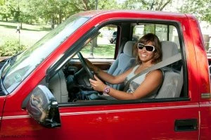 So you’re going to have to adjust your seat and make sure that you’re sitting comfortably – and properly. Unfortunately, for a lot of people, what’s “comfortable” for them is not the best driving position. The worst of these “comfortable” positions are the two extremes: the driver (stereotypically young and male) who has the seat as back from the pedals as possible and the seat tilted back with the steering wheel low, and the driver (stereotypically older and female) who has hunches over a high steering wheel and the seat so far forward that she could just about steer it with her boobs or teeth. These positions will be hell on your back and neck if you stay in them for a long time, and they don’t make for great road safety.